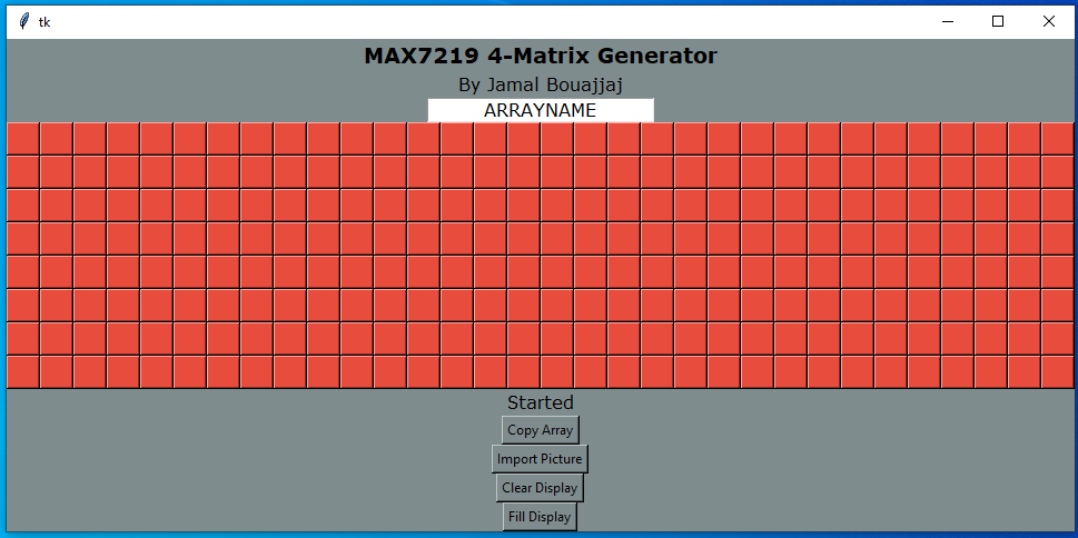 Dupa cum putem observa in codul anterior am folosit si cateva elemente grafice. Pentru a putea folosi aceste elemente grafice va trebui sa le incarcam intr-un array. Pentru a crea o grafica personalizata putem folosi un generator care poate fi gasit pe acest site. De pe acea pagina putem descarca fisierul 4-Matrix.exe pe care-l vom rula pentru a crea propriile elemente grafice. La rulare acest are urmatoarea interfata: