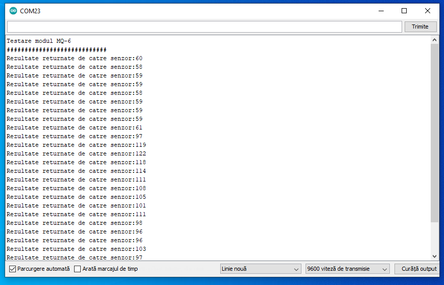 Serial.println("Testare modul MQ-6");