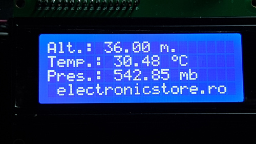 Pentru a afisa datele obtinute vom folosi un display LCD 2004 impreuna cu adaptorul I2C. Conectarea se face simplu, pe magistrala I2C, atat adaptorul displayului cat si modulul BMP180 fiind conectate in paralel pe aceeasi pini la Arduino Mega.
