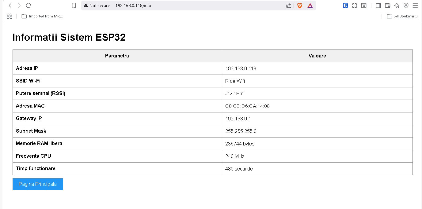 html += "<p><strong>Timp functionare:</strong> " + String(millis() / 1000) + " secunde</p>";